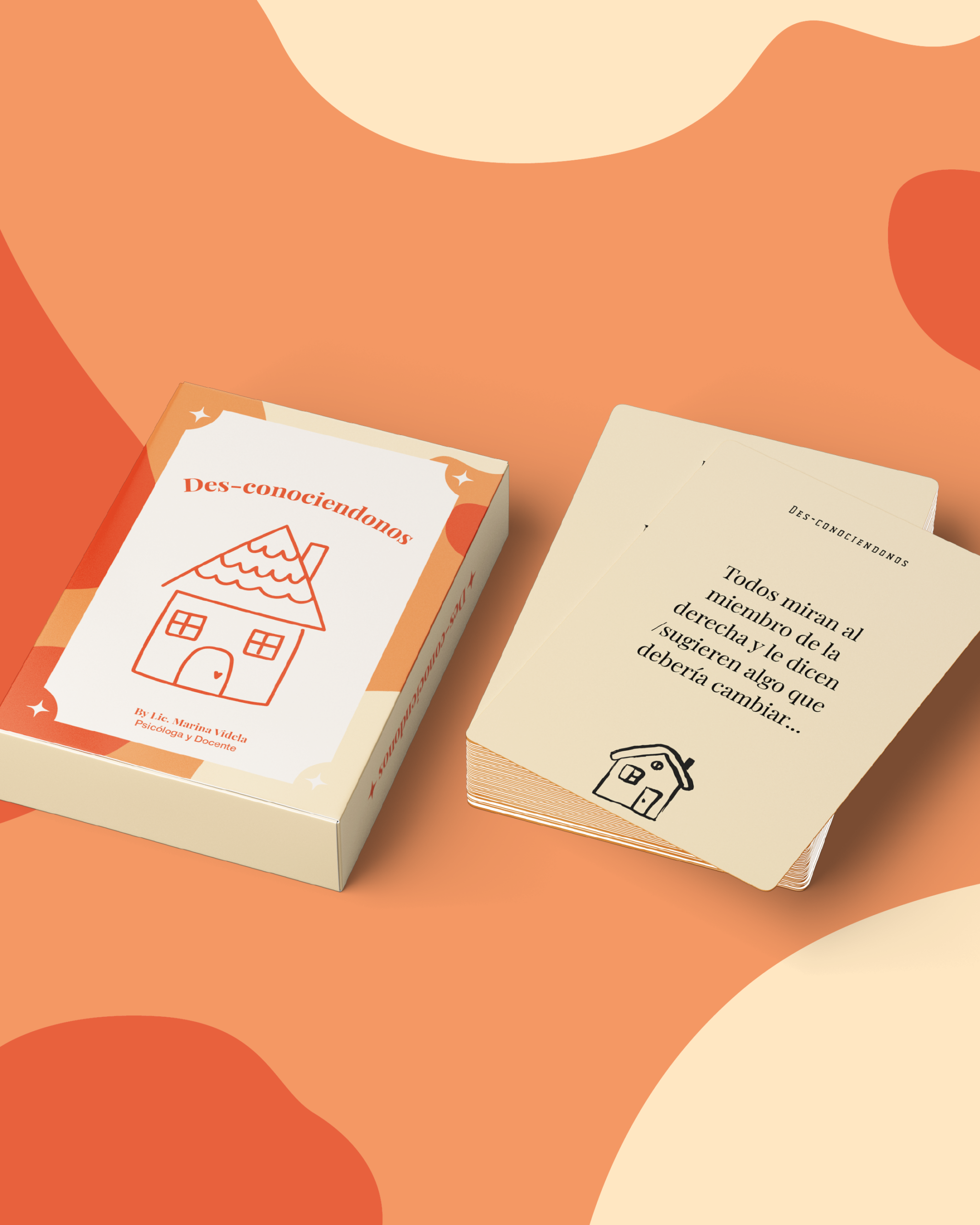 Des-Conociéndonos Familia +12 es un mazo de cartas con preguntas psicológicas pensadas para fomentar la conexión, la empatía y el entendimiento entre padres, hijos y referentes afectivos a partir de los 12 años.